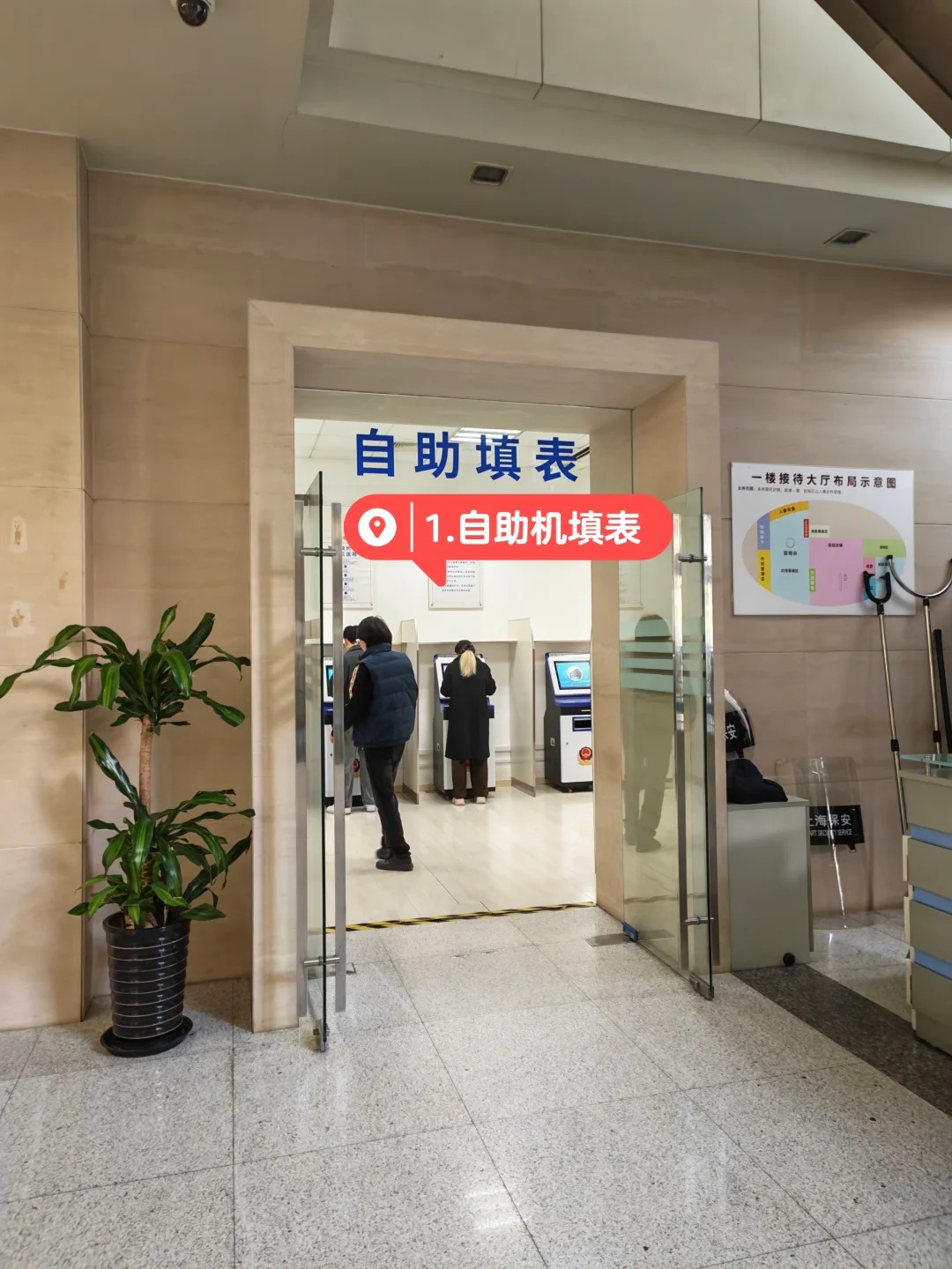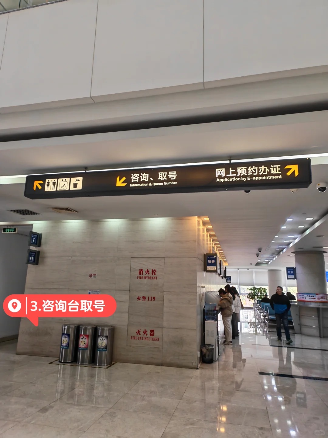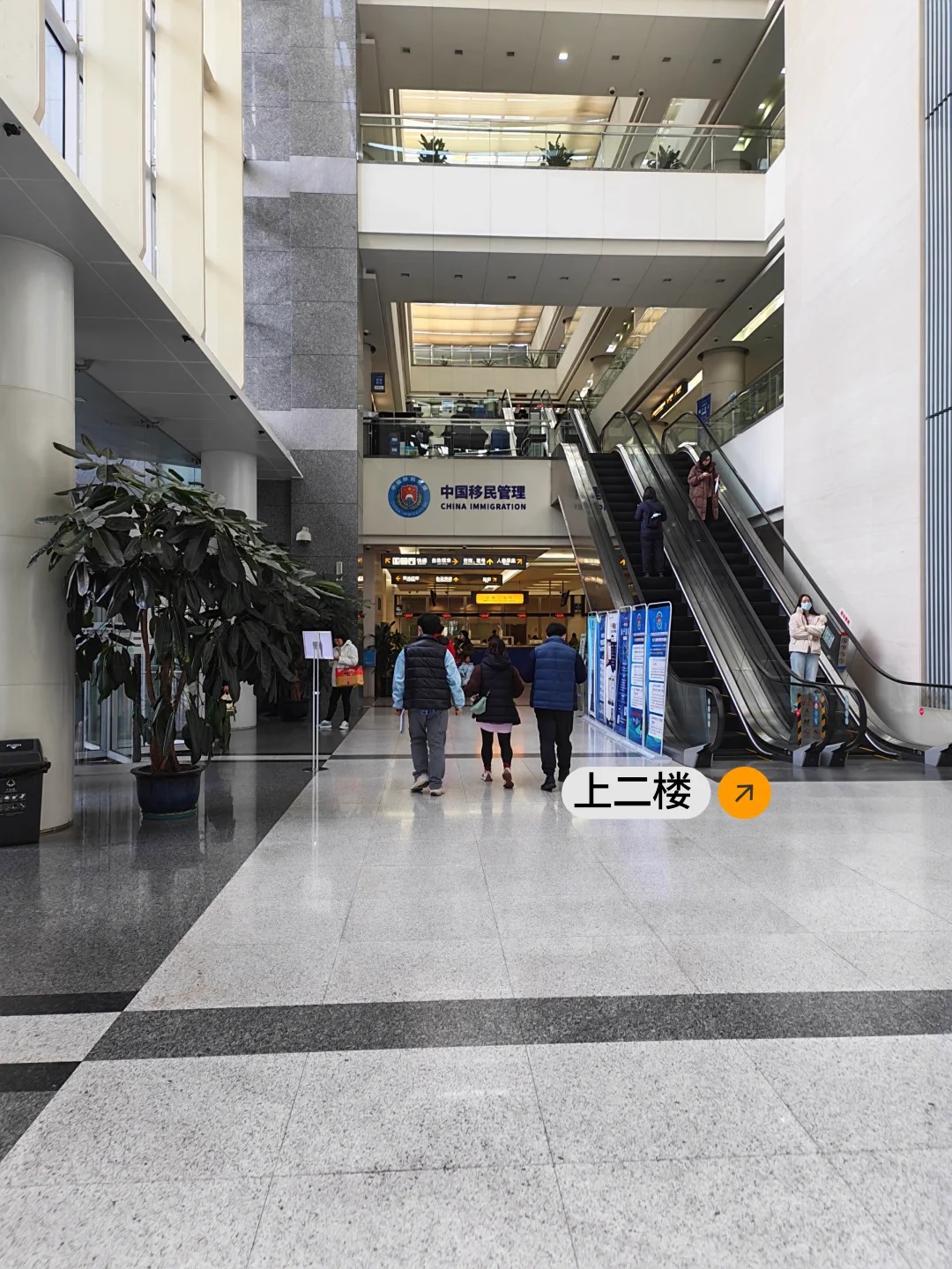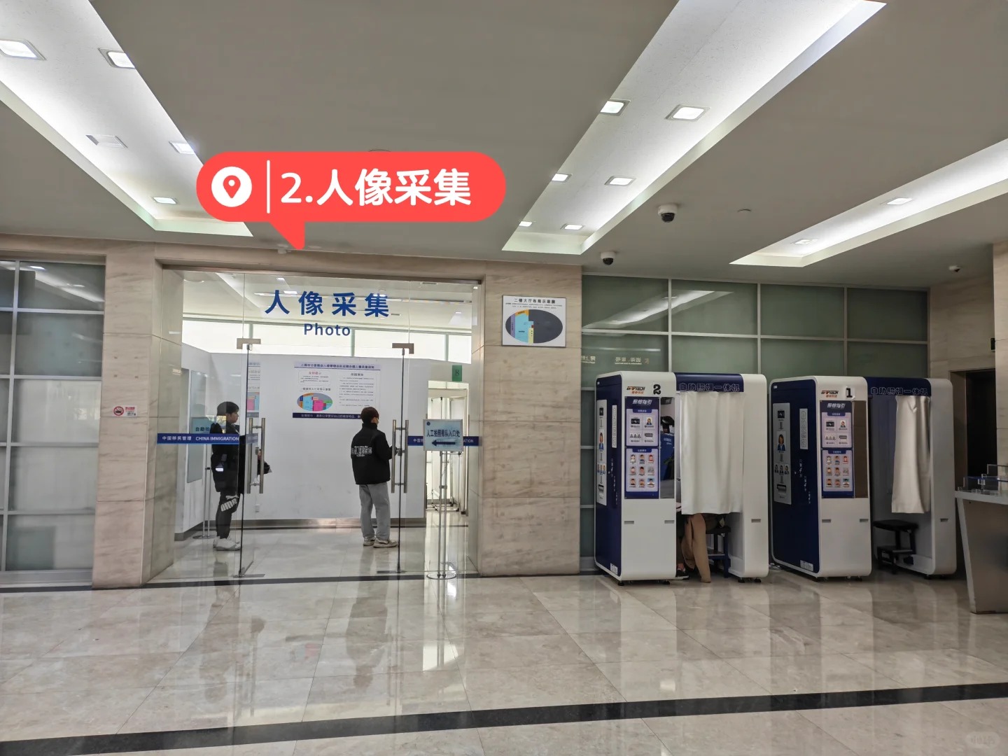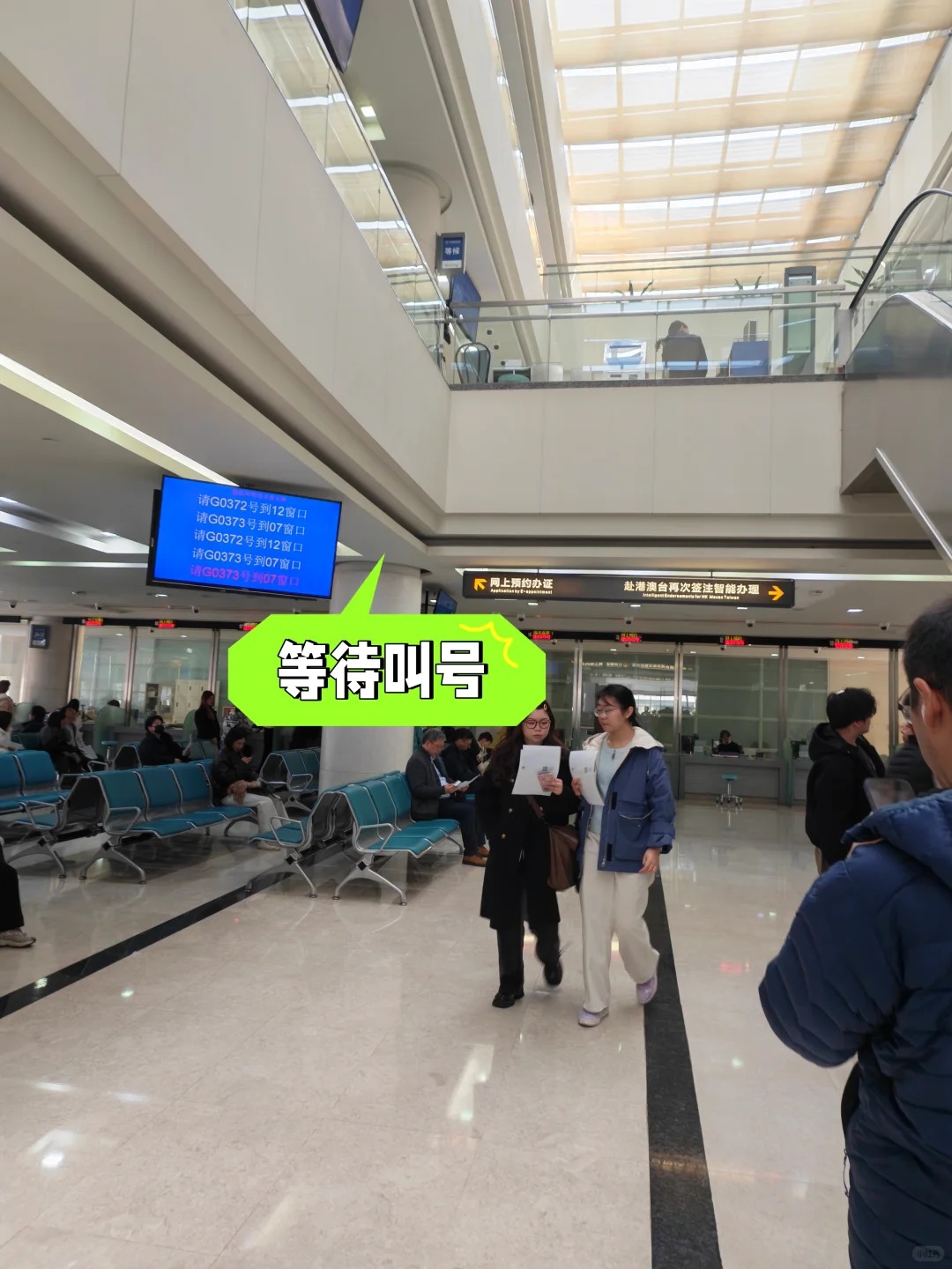 預約成功後會收到短信提示,屆時攜帶身份證到了 民生路1500號的 出入境管理局總部,一樓使用身份證打印辦理單,然後上二樓,按指示牌去採集人像拍照(一年內在出入境系統內拍過照可以不用再拍).接著回到扶梯口的取號臺人工取號,在二樓座位上等待叫號.<br>