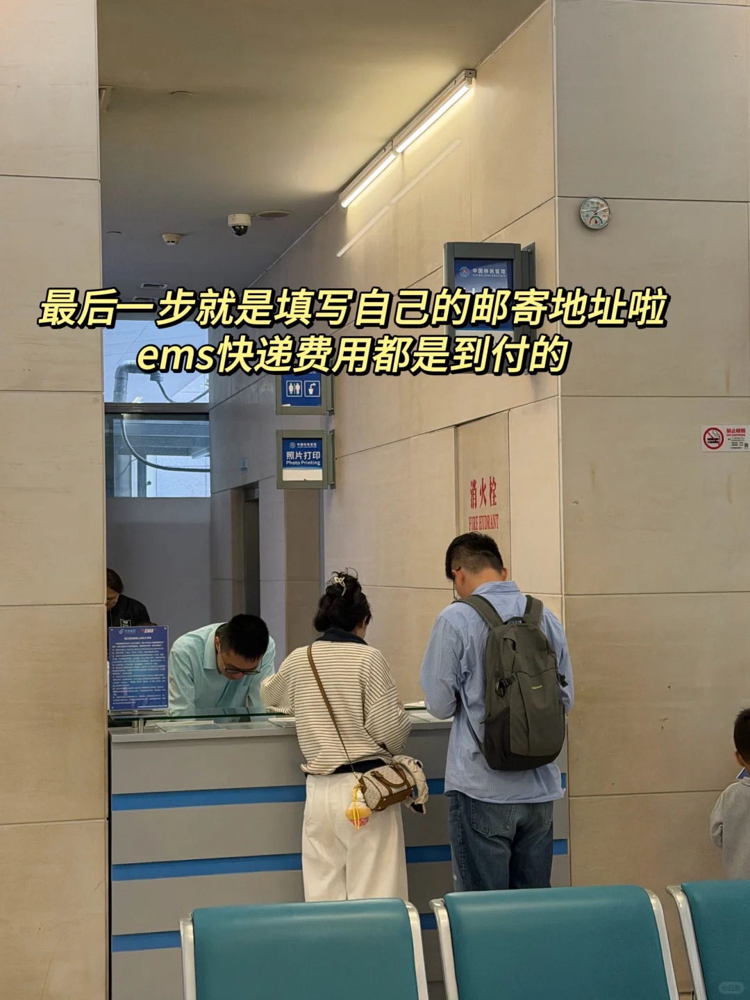 最後如果選擇郵寄證照,就到一樓中國郵政工作台,掃碼填寫郵寄信息,到付15元,預計10個工作日送到.<br>